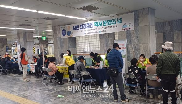 (비씨엔뉴스24) 부산 동래구보건소는 지난 21일 오후 2시부터 오후 4시까지3호선 미남역에서 도시철도와 함께하는 '건강증진 역사'를 운영했다고 밝혔다.