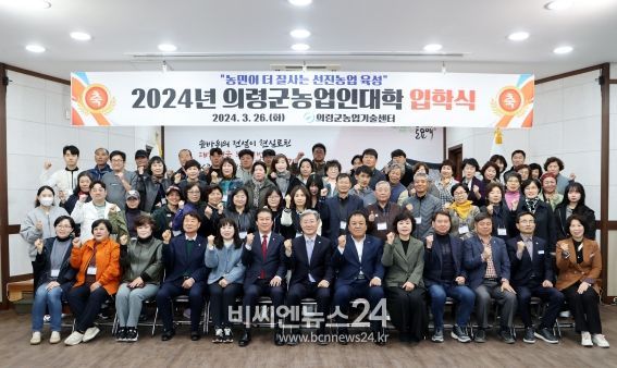(비씨엔뉴스24) 의령군은 26일 교육생과 내외빈 등 70여명이 참석한 가운데 2024년 의령군농업인대학 입학식을 개최했다.
