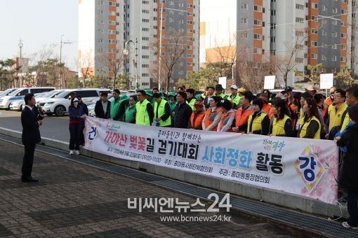 (비씨엔뉴스24) 중마동 사회단체협의회는 지난 23일 지역주민과 각 사회단체 회원 등 150여 명이 참여한 가운데 ‘중마동민과 함께하는 가야산 벚꽃길 걷기대회’가 성황리에 마무리됐다고 밝혔다.