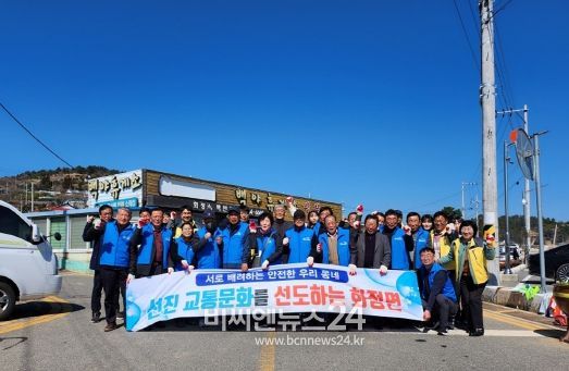 (비씨엔뉴스24) 여수 섬 관광 중심 1번지 화정면이 지난 25일 관광객의 주 이동 경로인 백야항, 여객선터미널 앞에서 교통안전 캠페인을 펼쳤다.