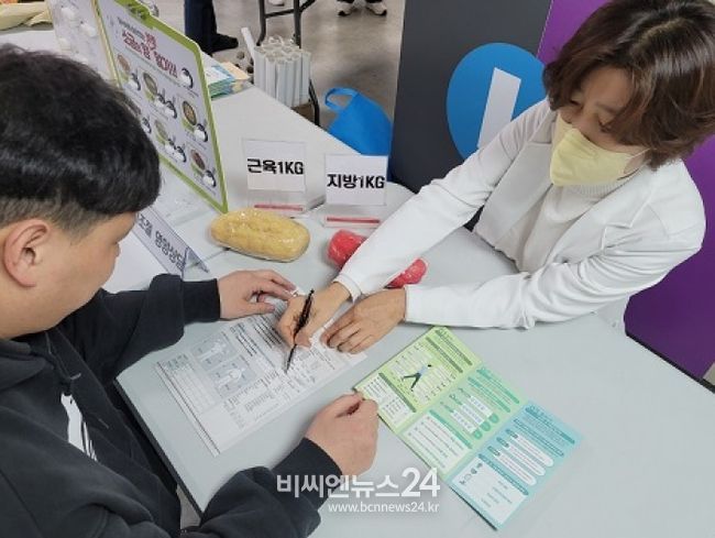 캠페인은 ▲체성분 측정 ▲맞춤형 운동상담 ▲식이조절을 위한 영양상담 ▲비만조끼를 활용한 비만체험공간 운영 ▲오감으로 느끼는 근육과 지방모형 체험 등 다양한 프로그램으로 구성됐다.