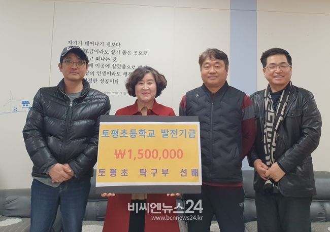 1985년 토평초 탁구부원이었던 학생들이 자라 어른이 되어 2023년 재창단이 되어 훈련을 열심히 하는 후배들에게 도움이 되고자 장학금 150만 원을 기탁했다.