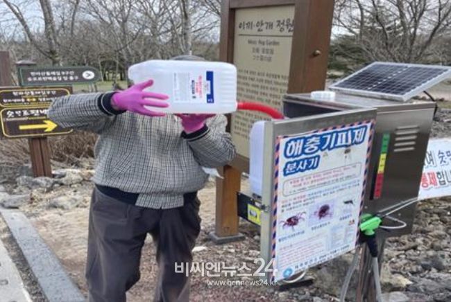 (비씨엔뉴스24) 제주보건소는 봄철 야외활동 증가에 따른 진드기 매개 감염병 발생 우려가 높아지고 있어 관내 오름 및 공원, 올레길 등에 설치된 진드기 기피제 수동분사기에 대한 집중 점검을 실시한다.