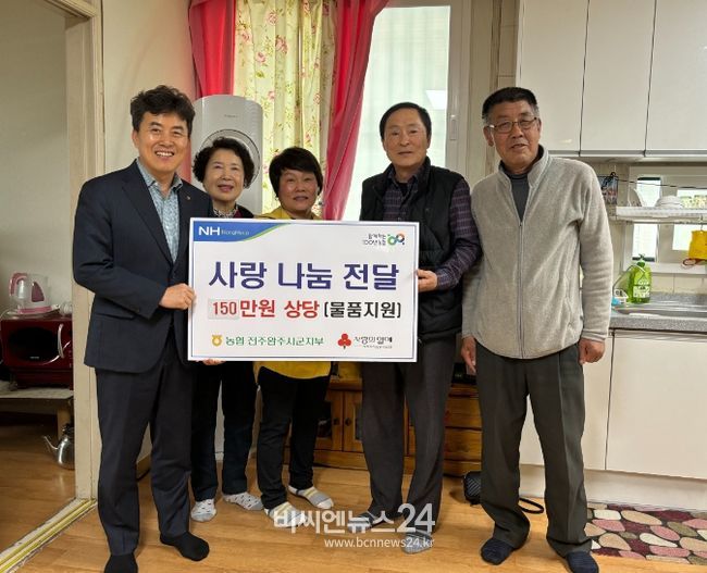 (비씨엔뉴스24) 농협 전주완주시군지부는 지난 26일 완주군 삼례읍에 위치한 경로당을 방문하여 사랑 나눔 전달 행사를 실시했다.