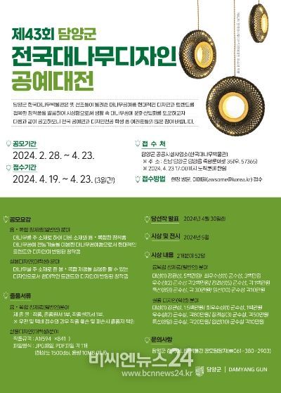 (비씨엔뉴스24) 담양군이 ‘제43회 전국대나무디자인공예대전’ 작품을 공모한다.