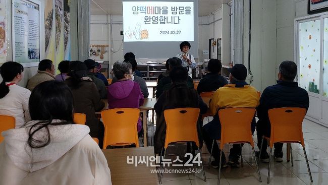 이날 정신건강복지센터 주간재활프로그램에 참여하는 등록 회원 30여명은 초계 하남 양떡메 마을을 방문해 실제로 맷돌을 돌려 손두부를 만들고 떡메를 쳐서 인절미를 만들었다.