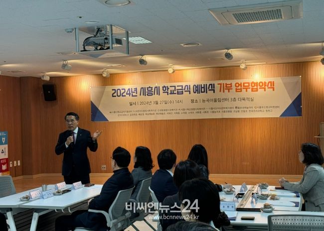 (비씨엔뉴스24) 경기도시흥교육지원청은 3월 27일 능곡어울림센터 3층 다목적실에서 시흥시학교급식지원센터에서 주관한 “학교급식 예비식 기부사업” 업무협약식에 참여했다.