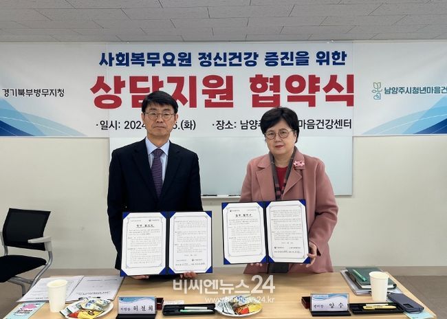 (비씨엔뉴스24) 남양주시정신건강복지센터의 부설 기관인 청년마음건강센터는 지난 26일 경기북부병무지청과 사회복무요원 정신건강 증진을 위한 상담 지원 업무협약을 체결했다.