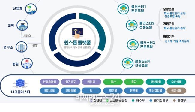 14대 산학협력지구들은 혁신 생명 자원 확보, 표준화를 통한 고품질 소재 및 맞춤형 기술지원 서비스(분석‧실험대행 등) 제공 등을 지원하고 있다. 또한, 과기정통부는 관계부처와 함께 수요자의 접근성‧편의성 제고를 위해 분야별 소재의 검색에서 분양까지 한 곳에서 이루어지는 생명소재 정보 통합 온라인체제기반(BioOne)도 구축‧운영 중이다.