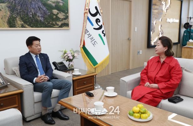 오영훈 지사는 이날 집무실에서 박림 회장을 만나 제주사랑 동참에 대한 감사를 전하는 한편, 최근 중국 산둥성 지역과의 포괄적 협약 체결 등 제주도의 대중국 교류 확대 노력을 공유하며, 지속적인 관심과 지원을 요청했다.