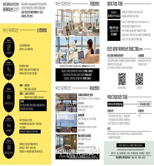 한편, '부산형 워케이션 사업'은 거점센터와 위성센터를 조성·운영해 원격근무를 위한 업무공간은 물론, 숙박과 관광 콘텐츠 제공으로 부산 생활인구 증가를 통한 지역경제 활성화와 장기적으로는 역외기업 유치까지 목표로 한다.