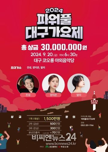 (비씨엔뉴스24) 대구광역시는 전국의 재능 있는 신인가수를 발굴하고 시민들과 함께하는 화합의 장 마련을 위한 ‘2024 파워풀 대구가요제’를 9월 20일 오후 6시 30분, 코오롱 야외음악당에서 개최한다.