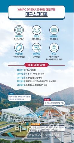 한편, 2026 대구세계마스터즈 육상경기대회는 2026년 8월 21일 개회식을 시작으로 8월 22일부터 9월 3일까지 13일간 대구스타디움(주경기장), 대구스타디움 보조경기장, 육상진흥센터, 수성패밀리파크, 율하체육공원 등에서 열리게 된다.
