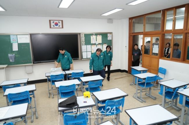 (비씨엔뉴스24) 하윤수 부산광역시교육감이 22일 오후 이틀간 집중호우로 학교시설에 피해를 입은 강서구 경일고를 찾아 피해 상황을 점검했다.