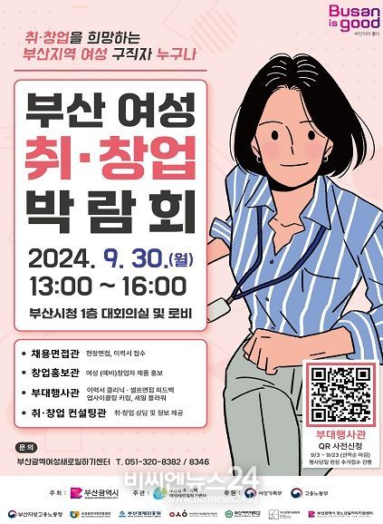 (비씨엔뉴스24) 부산시 여성문화회관은 오는 30일 오후 1시부터 4시까지 시청 대회의실과 로비에서 '2024 부산 여성 취·창업 박람회'를 개최한다고 밝혔다.