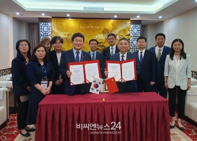 (비씨엔뉴스24) 제주특별자치도교육청과 중국 강소성교육청 간 교육협력 협약식이 20일 김광수 교육감과 지양용 교육청장 등을 비롯한 관계자들이 참석한 가운데 중국 강소성 교육청에서 있었다.