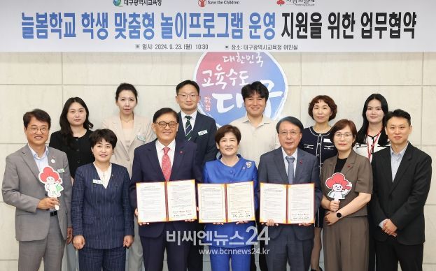 (비씨엔뉴스24) 대구시교육청은 9월 23일 오전 10시 30분에 시교육청 여민실에서 세이브더칠드런, 대구사회복지공동모금회 등 2개 기관과 ‘늘봄학교 놀이프로그램 운영’을 위한 업무협약을 체결한다.