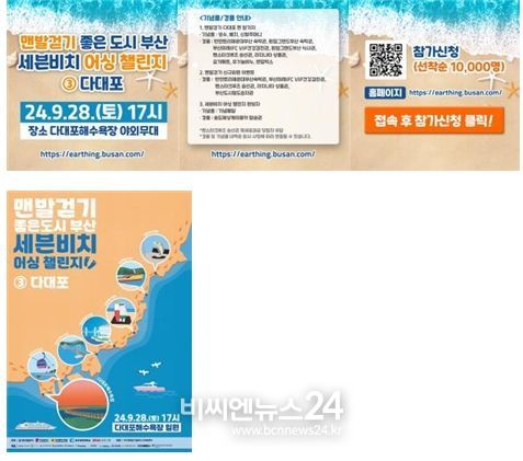 (비씨엔뉴스24) 부산시는 오는 9월 28일 오후 5시 다대포해수욕장 일원에서 '맨발걷기 좋은 도시 부산, 세븐비치 어싱*챌린지' 세 번째 편을 개최한다고 밝혔다.