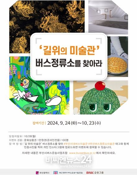 (비씨엔뉴스24) 부산시는 시와 부산시버스운송사업조합이 주관하고 비엔케이(BNK)금융그룹이 후원해 도시의 정체성을 반영한 '길위의 작은 미술관'을 오늘(24일)부터 12월 31일까지 시민에게 선보인다고 밝혔다.