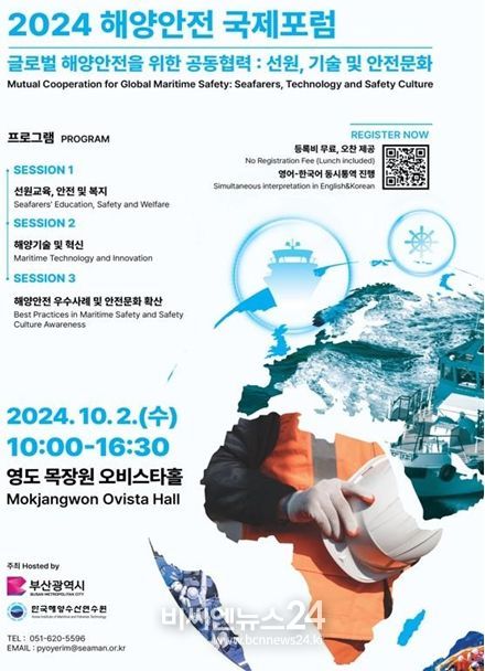 (비씨엔뉴스24) 부산시는 오는 10월 2일 오전 10시 영도 목장원에서 '글로벌 해양안전을 위한 공동협력'을 주제로 '2024 해양안전 국제포럼'을 개최한다고 밝혔다.