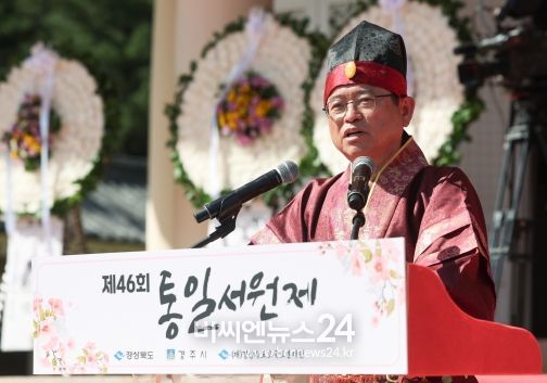 (비씨엔뉴스24) 경상북도는 2일 경주 통일전에서 이철우 경상북도지사를 비롯한 주요 기관·단체장과 민족통일협의회 등 1,000여 명이 참석한 가운데 삼국통일의 위업을 기리고 대한민국의 통일 의지를 다짐하는 ‘제46회 통일서원제’를 개최했다.