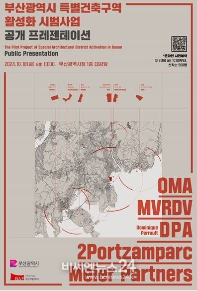 (비씨엔뉴스24) 부산시와 (사)부산국제건축제조직위원회가 '부산광역시 특별건축구역 활성화 시범사업'의 공개 발표회를 오는 18일 오전 10시부터 시청 대강당에서 개최한다고 밝혔다.