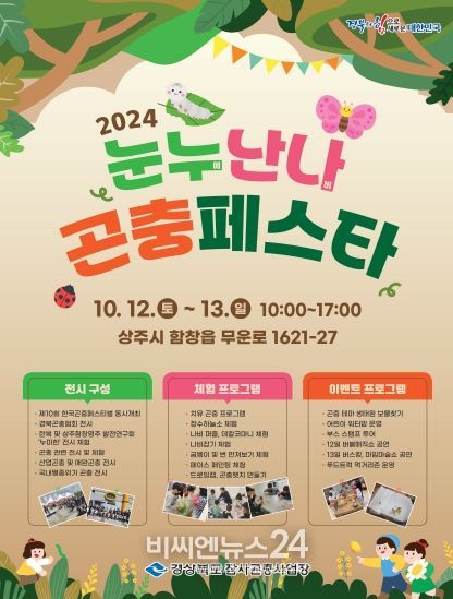 (비씨엔뉴스24) 경상북도 대표 곤충 축제 ‘2024 눈누난나 곤충페스타’가 12일, 13일 양일간 상주시 함창읍 경상북도 잠사곤충사업장 일원에서 열린다.