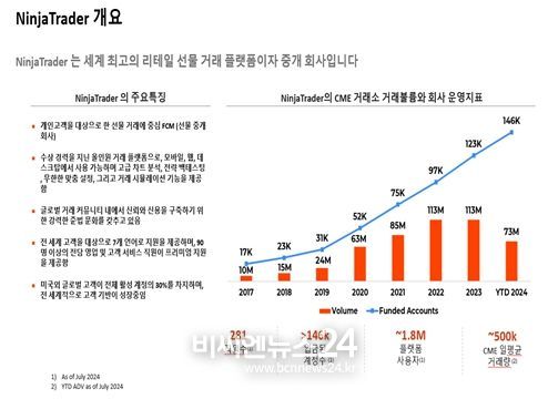 (비씨엔뉴스24) 부산시는 세계 최대 파생상품 거래소인 시카고상업거래소(CME)에서 글로벌 파생상품 거래 플랫폼을 제공하는 선도적인 금융기술(핀테크) 기업 '닌자트레이더 그룹(NinjaTrader Group)'의 아시아 최초 해외법인 본사를 부산에 유치했다고 밝혔다. 이번 유치는 부산이 글로벌 금융 중심지로 도약하는 중요한 이정표로 평가된다.