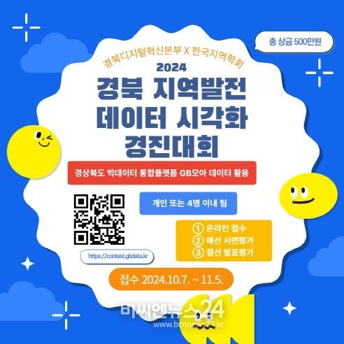 (비씨엔뉴스24) 경상북도는 GB모아(경북 빅데이터 통합플랫폼)의 활용도를 높이고, 경북의 지역발전 아이디어를 발굴하기 위해 ‘2024 경북 지역발전 데이터 시각화 경진대회’를 개최한다.