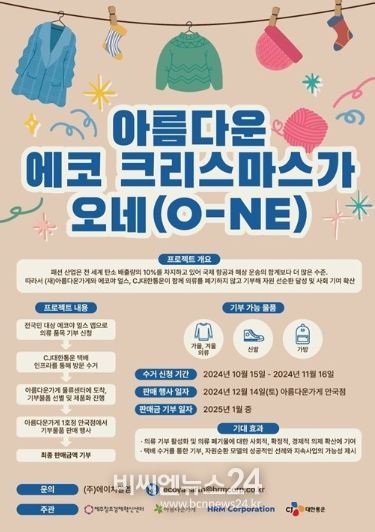 이번 캠페인은 ‘아름다운 에코 크리스마스가 오네(O-NE)’를 주제로 의류 폐기물이 환경에 미치는 부정적 영향을 줄이고 자원 순환을 촉진하기 위해 마련된 사회적 활동이다.