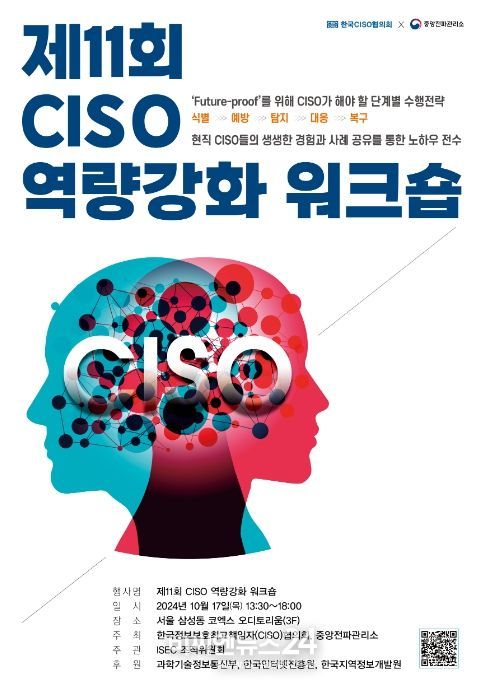 (비씨엔뉴스24) 과학기술정보통신부 중앙전파관리소는 코엑스오디토리움(3층)에서 10월 17일 전국 정보보호최고책임자(이하 CISO) 대상으로 '제11회 역량강화 연찬회'를 (사)한국정보보호최고책임자협의회와 공동으로 개최한다고 밝혔다.
