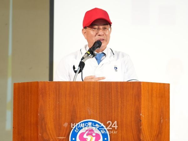 (비씨엔뉴스24) 하윤수 부산광역시교육감이 17일 오전 10시 신정중 강당에서 1학년 160여 명을 대상으로 열린 ‘찾아가는 부산말하는영어 1.1.1. 한마당’에 참석해 우수학교 기념패 전달 후 행사에 참여하고 있다.