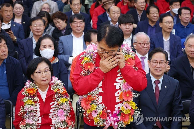 전임 구청장 유고로 치러진 이번 보선을 두고 민주당 김영배 의원이 '혈세 낭비'라고 발언한 것도 지역 표심을 자극해 국민의힘이 '반사효과'를 누렸다는 해석도 있다. 당 관계자는 "김 의원 발언 직전 실시한 내부 여론조사에서 우리가 2%p 차이로 지는 결과도 있었다"고 전했다.【부산=연합뉴스】