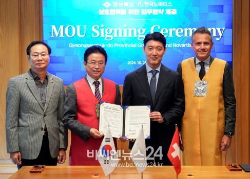 (비씨엔뉴스24) 이철우 경북도지사는 28일 스위스 바젤에 위치한 노바티스(Novartis)를 방문해 패트릭 호버(Horber, Patrick) 인터내셔널 혁신의약품 사장과 면담하고, 상호협력을 위한 업무협약(MOU)을 체결했다. 협약식에는 이철우 도지사, 패트릭 호버 사장, 유병재 한국노바티스 대표이사가 참석한 가운데 이루어졌다.
