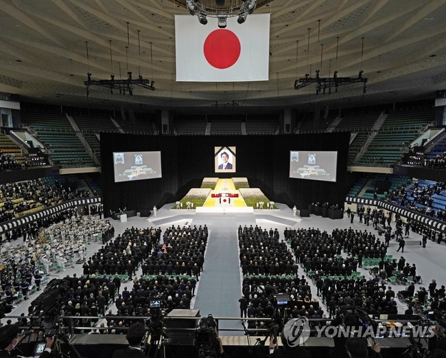 지난 7월 8일 선거 유세 도중 총격으로 사망한 아베 신조(安倍晋三) 전 일본 총리의 국장(國葬)이 27일 4천300여 명의 국내외 조문객이 참석한 가운데 도쿄 일본무도관에서 치러졌다.