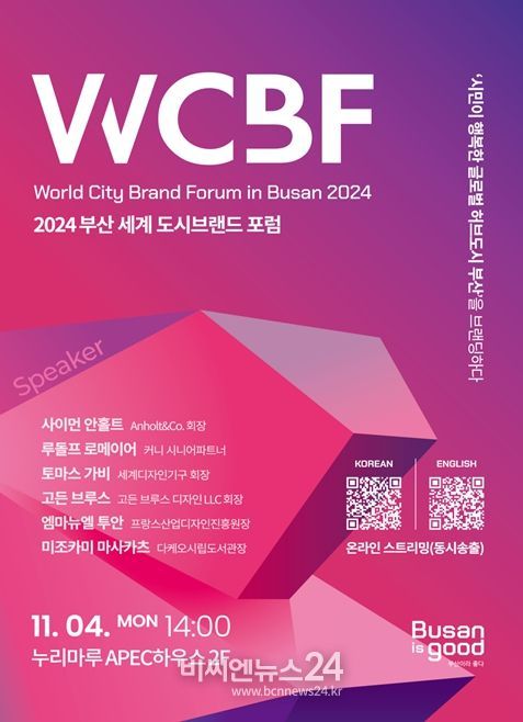 (비씨엔뉴스24) 부산시는 오늘(4일) 오후 2시 누리마루 에이펙(APEC) 하우스에서 '2024 부산 세계 도시브랜드 포럼(WCBF)'을 개최한다고 밝혔다.
