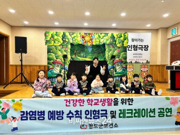 (비씨엔뉴스24) 청도군은 새학기를 맞아 오는 24일까지 관내 유치원 및 초등학교 학생 400여 명을 대상으로 총 9회에 걸쳐 손씻기의 중요성 및 기침예절 등을 알리는 감염병 인형극 및 레크리에이션 공연을 실시한다.