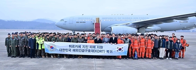 강진 피해를 본 튀르키예에 파견됐던 대한민국 해외긴급구호대(KDRT) 1진이 18일 오전 7시 성남 서울공항으로 귀국했다. 외교부는 이날 구호대장을 맡은 원도연 외교부 개발협력국장이 지진 피해 현장의 생존자 구조, 시신 수습, 각국 구호대와의 협력 및 튀르키예 재난위기관리청과의 협업 등 활동을 마친 뒤 복귀를 보고했다고 밝혔다.