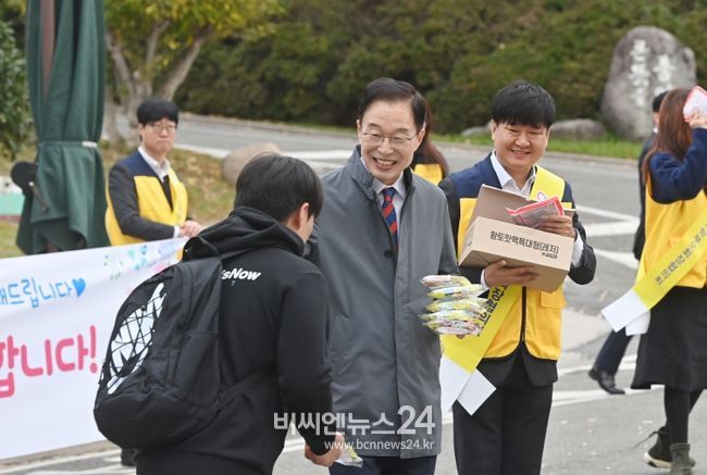 (비씨엔뉴스24) 임종식 경북교육감은 14일 아침 7시 2025학년도 대학수학능력시험 제80(포항)지구 제1시험장인 포항고등학교를 찾아 긴장된 표정의 수험생들에게 따뜻한 격려와 응원의 말을 전했다.