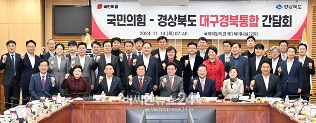 (비씨엔뉴스24) 경상북도와 국민의힘은 14일 국회의원회관에서 대구경북통합 간담회를 열고 지역 국회의원들의 의견을 수렴하고 국회와의 협력방안을 논의했다.