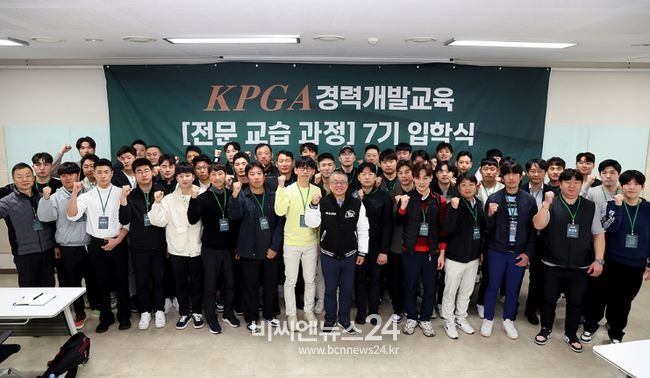(비씨엔뉴스24) (사)한국프로골프협회(회장 김원섭, KPGA)의 KPGA 경력개발교육 ‘전문교습과정 7기’ 입학식이 KPGA 김원섭 회장과 여러 KPGA 회원들이 참석한 가운데 3일 경기 화성 소재 YBM 연수원에서 개최됐다.