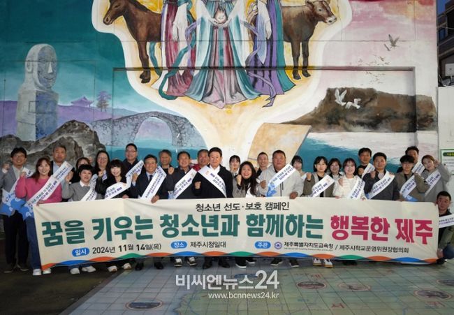 (비씨엔뉴스24) 제주특별자치도학교운영위원장협의회는 14일 대학수학능력시험이 끝난 이후‘고3 수험생 등 청소년 선도·보호 캠페인’을 제주시청과 서귀포시청 일대에서 진행했다.