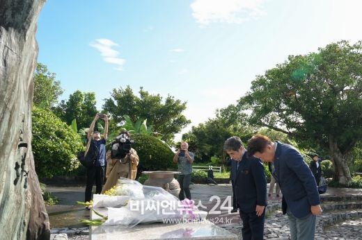 지난 13일부터 일본 오키나와현을 방문 중인 제주도 대표단은 15일 아침 오키나와 평화기념공원을 방문했다.