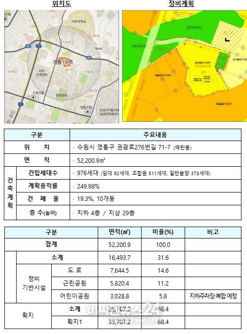 (비씨엔뉴스24) 국토교통부는 수원특례시장과 함께 11월 18일 오후 수원 매탄동에 위치한 영통1 재개발사업 현장을 찾아 방문할 계획이라고 밝혔다.