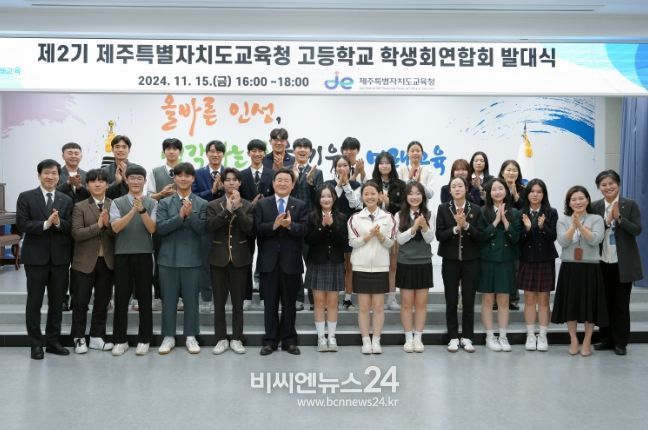 (비씨엔뉴스24) 제주특별자치도교육청은 15일 도교육청 대회의실에서 학생회연합회 회원 28명과 지도교사 2명이 참석하여 제2기 고등학교 학생회연합회 발대식을 개최했다.