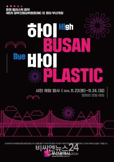 (비씨엔뉴스24) 부산시는 오는 11월 23일부터 이틀간 오전 10시부터 오후 5시까지 영화의전당 야외광장에서 '하이 부산, 바이 플라스틱(High Busan, Bye Plastic)' 시민 체험행사를 개최한다고 밝혔다.