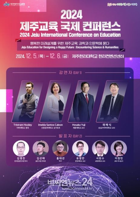 (비씨엔뉴스24) 제주특별자치도교육청은 12월 5일과 6일 제주한라대학교 한라컨벤션센터에서 ‘행복한 미래설계를 위한 제주교육: 과학과 인문학에 묻다’라는 주제로 2024 제주교육 국제 콘퍼런스를 개최한다고 밝혔다.