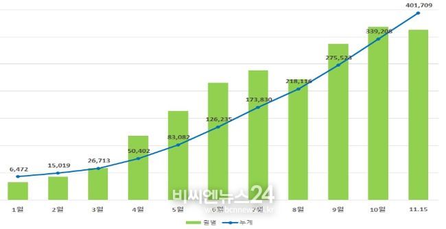 (비씨엔뉴스24) 농림축산식품부에서 개설하여 한국농수산식품유통공사가 운영 중인 '농수산물 온라인도매시장'의 올해 거래금액이 지난 11월 15일 4,000억원을 돌파했다.