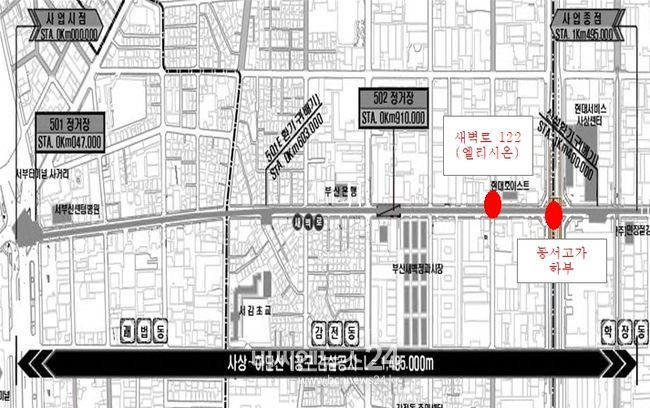 지난 8월 20일에 새벽로 122 일원에서 발생한 지반침하 사고는 해당 지역의 연약지반 등을 고려해 당초 흙막이 벽체의 경우 ‘C.I.P.겹침주열말뚝(∅550)’으로 설계됐으나, 교차로 구간의 지하매설물로 인해 ‘H-Pile+토류벽콘크리트 및 SGR(∅800) 차수공법’으로 변경해 시공됐다.