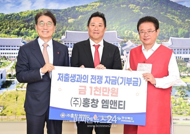 (비씨엔뉴스24) ㈜홍창 엠앤티는 22일 경북도청을 방문해 이철우 경상북도지사, 전우헌 경북사회복지공동모금회 회장 및 관계자가 참석한 가운데 저출생 극복 성금 1천만원을 전달했다.